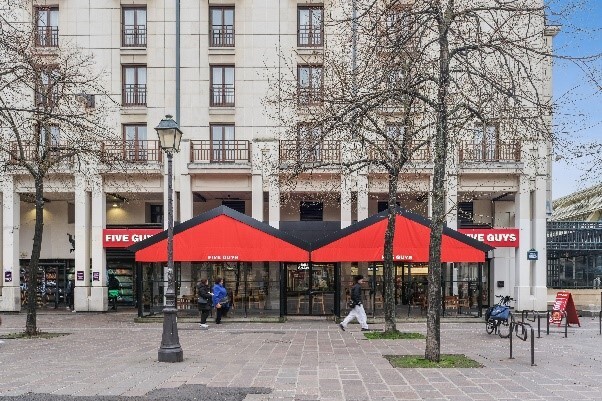 The asset comprises 565 sqm of space across the ground floor, upper storey, and basement level, and is fully let to Five Guys, the American fast-food chain which operates over 1,800 restaurants worldwide. This asset ranks among the top performing Five Guys locations in France, where the chain operates more than 35 units.