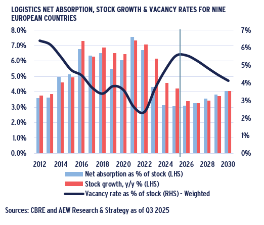 - Vacancy for retail warehouses (incl. furniture, DIY, etc.) was reported at 3.7% in Q3 2025, the lowest level since 2014.