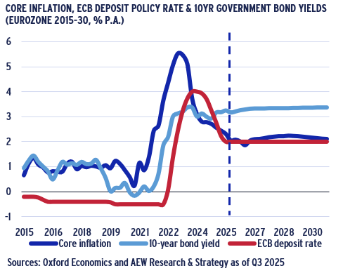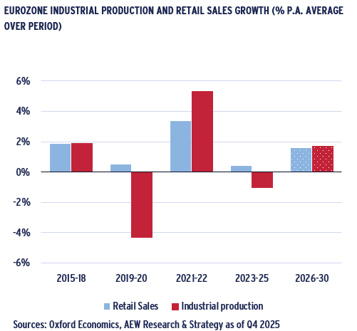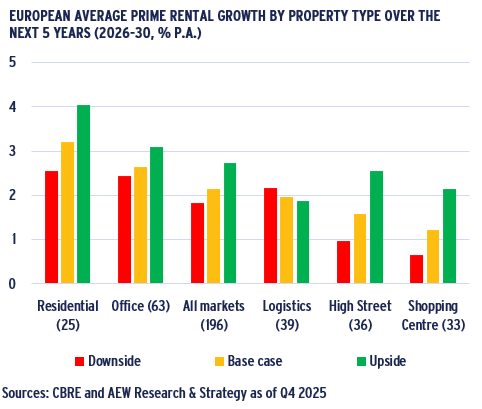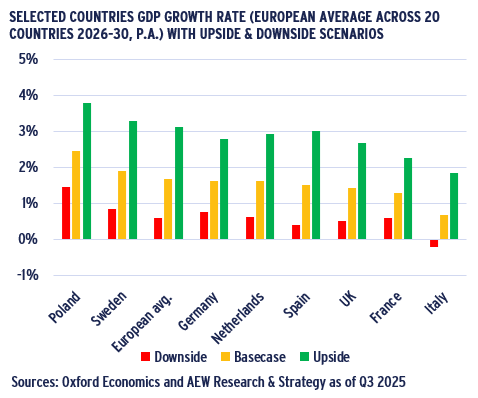 - Our property market models use Oxford Economics’ (OE) forecast of 1.7% GDP p.a. growth for Europe in 2026-30.