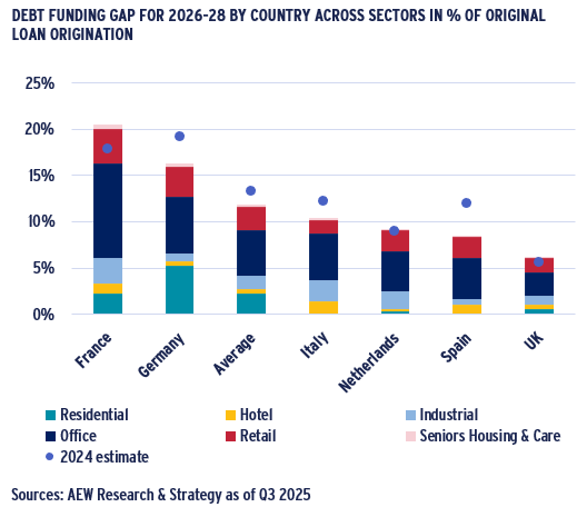 - Despite lower borrowing costs, refinancing challenges persist for many European investors, particularly in 2026.
