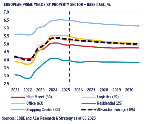 - Since projected yield tightening by year-end 2030 is expected to remain limited, capital value growth from this source will likely be modest.