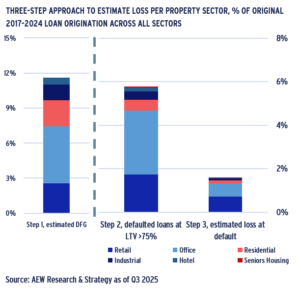 - Our estimated loan losses are concentrated in the office and retail sectors, which suffered the largest repricing since 2016.