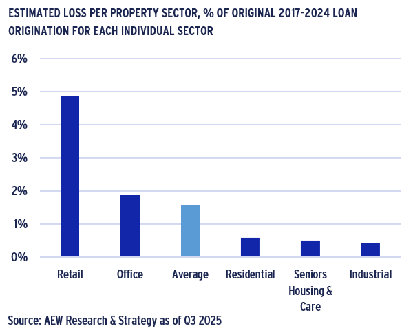 - Losses estimated for retail-backed loans in the 2017-24 loan vintages stand at 5% of all retail loans originated - more than three times the overall average across all sectors.
