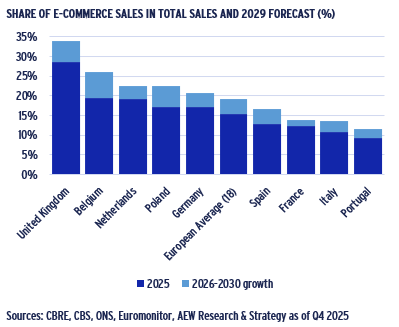 - However, the situation is different in the rest of Europe, where e-commerce penetration has been less prevalent.