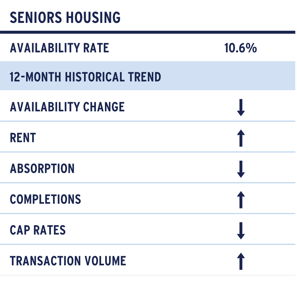 The sector’s needs‑driven demand profile continues to position it as one of the most resilient areas within commercial real estate. Over the near term, pricing power and broader operating fundamentals are expected to strengthen further, supported by powerful demographic trends. The leading edge of the Baby Boomer cohort is roughly 60% larger than today’s resident base, and neither existing inventory nor the development pipeline is positioned to fully absorb the surge in future demand. This demographic momentum represents a significant long‑term growth catalyst for seniors housing.