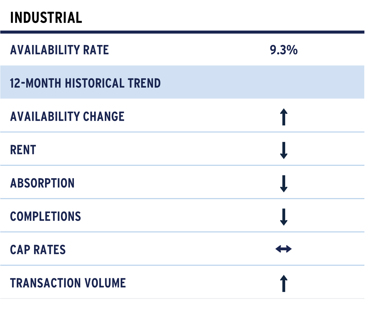 INDUSTRIAL AVAILABILITY RATE IN Q3 VS. YEAR-END 2024