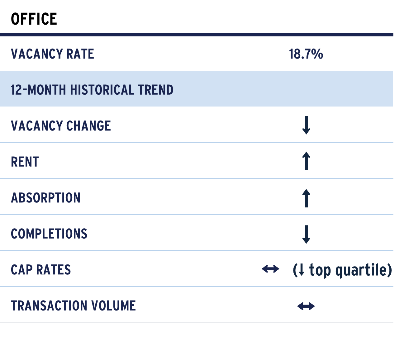 Despite more firms mandating in-office work, overall demand for space has only slightly increased because these policies often coincide with downsizing, relocations or staff reductions. New York and Dallas continue to outperform, posting five or more straight quarters of positive absorption, while other urban markets struggle with weaker demand amid economic uncertainty and space givebacks. In New York, we continue to monitor developments surrounding the mayoral race and its implications for the city’s office market and broader business climate. The long-term impact to office demand of labor-saving tech like AI versus return-to-office mandates remains unclear.
