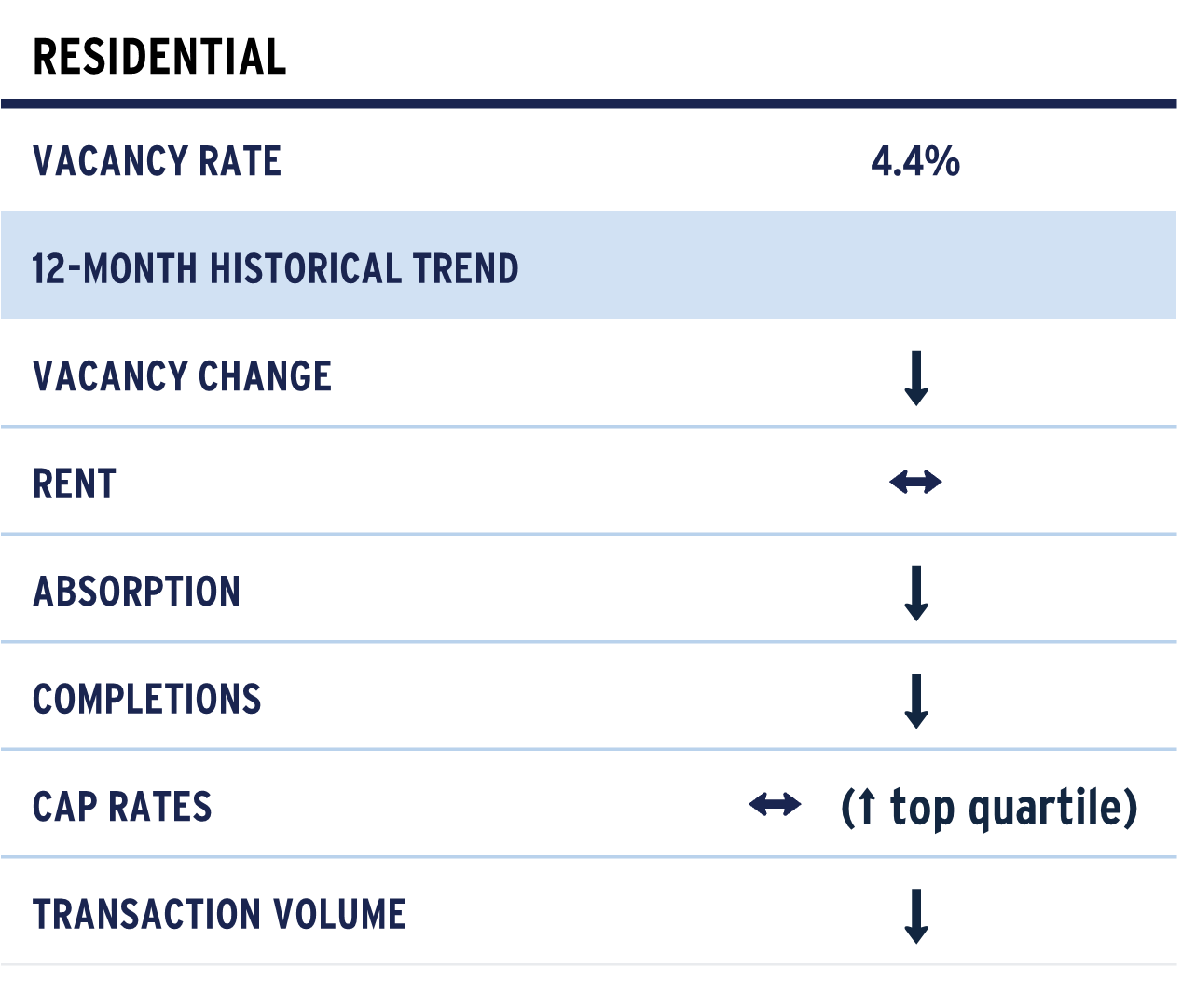 CURRENT APARTMENT VACANCY RATE AND CHANGE IN VACANCY RATE OVER PAST YEAR